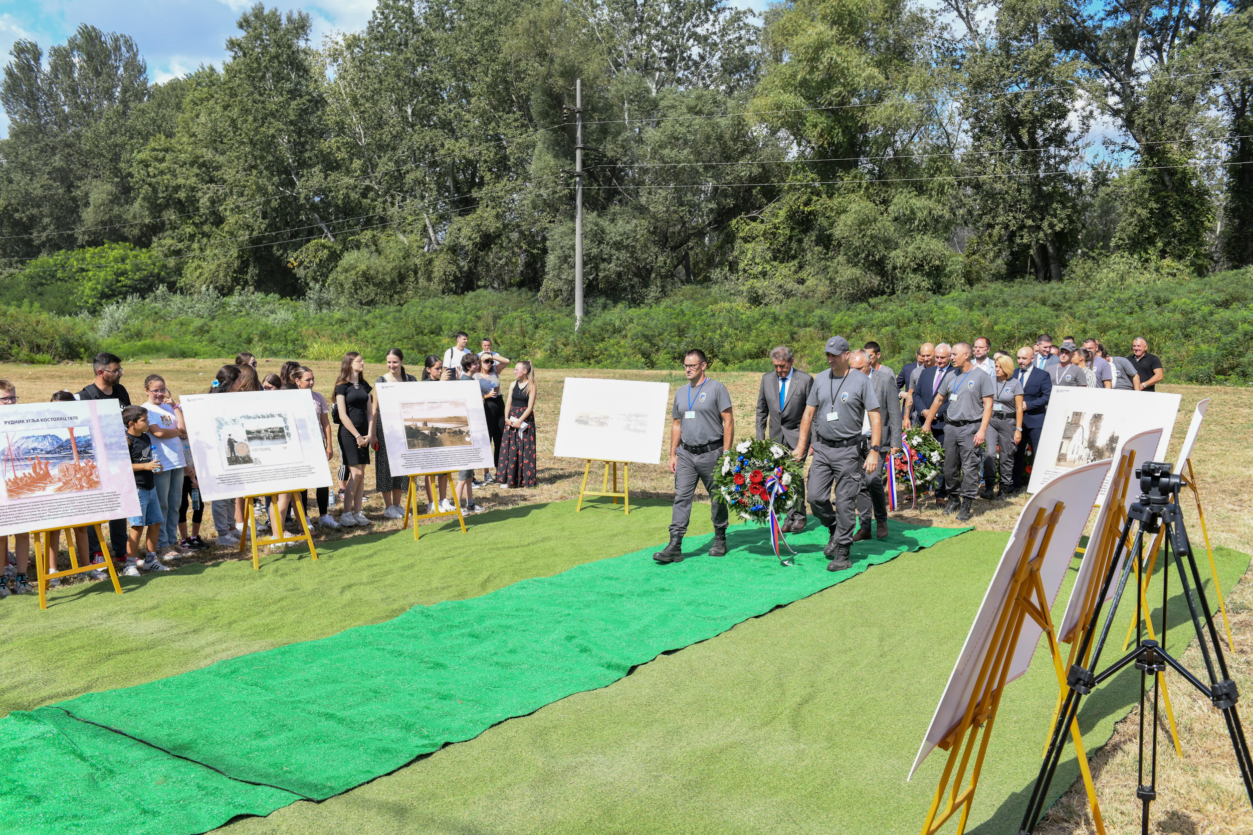 Wreaths laying ceremony at Miner's Memorial in Stari Kostolac was held in honour of the generations who worked in the former underground and current surface lignite mines. Wreaths were laid by Veljko Kovačević and Stefan Srbljanović, State Secretaries in the Ministry of Mining and Energy, Milan Novaković, Chief of Cabinet of the Minister of Mining and Energy, Dušan Živković, General Manager of EPS JSC, Zoran Milošević, Director of Coal Production in TE-KO Kostolac Branch, representatives of Kostolac trade union, Saša Pavlović, the mayor of Požarevac and Serdžo Krstanoski, president of Kostolac City Municipality with associates.